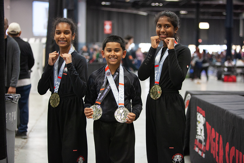 Twice a year, students at Tiger Schulmann’s locations across the US convene for the largest single-day martial arts tournament in the United States…the Challenge of Champions (COC). Having steadily grown each year since its inception in 1996, today’s COC consists of 400+ divisions, 1,800 competitors, 4,000 spectators, and over 5,000 individual matches in Jiu-Jitsu, Kickboxing, and Mixed Martial Arts. The COC provides Tiger Schulmann students of all ages, backgrounds, and belt ranks the opportunity to put their skills to the test.
